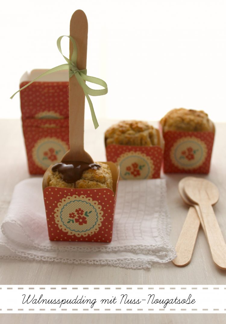 ...oder besser gesagt einen Walnuss-Pudding mit lecker Schoko-Soße. Nein, nicht so einen Pudding wie du jetzt vielleicht denkst. Dieser Pudding kommt weder aus der Tüte noch aus dem Kochtopf. Nein, aus dem Backofen ist er geschlüpft und ist nichts anderes als eine Mischung aus Kuchen und Creme - ...